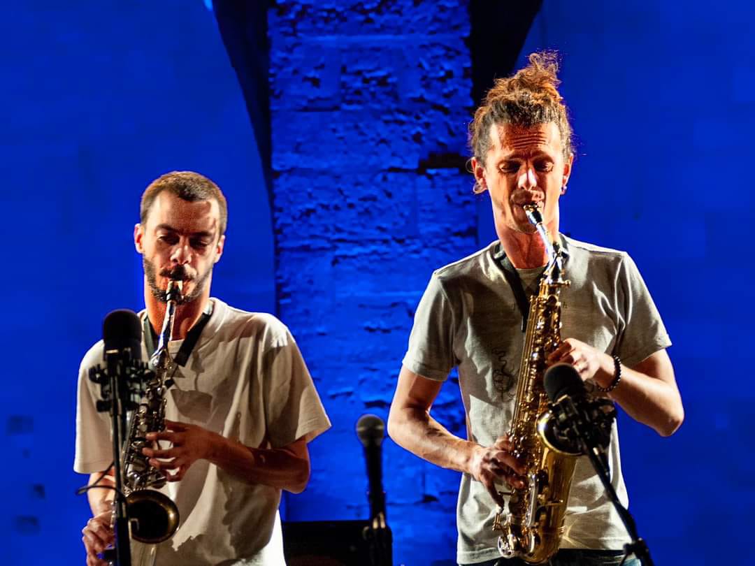 Nous explorons les possibles du saxophone, loin de tout carcan esthétique. Nous composons à quatre mains, en cherchant des équilibres, des frottements, des ponts entre nos deux approches instrumentales.